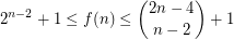 . ![\[ 2^{n-2} + 1 \le f(n) \le { 2n-4 \choose n-2 } + 1 \]](/files/tex/1310cd34786c87452b44d74376b43a1e75d8f2f6.png)